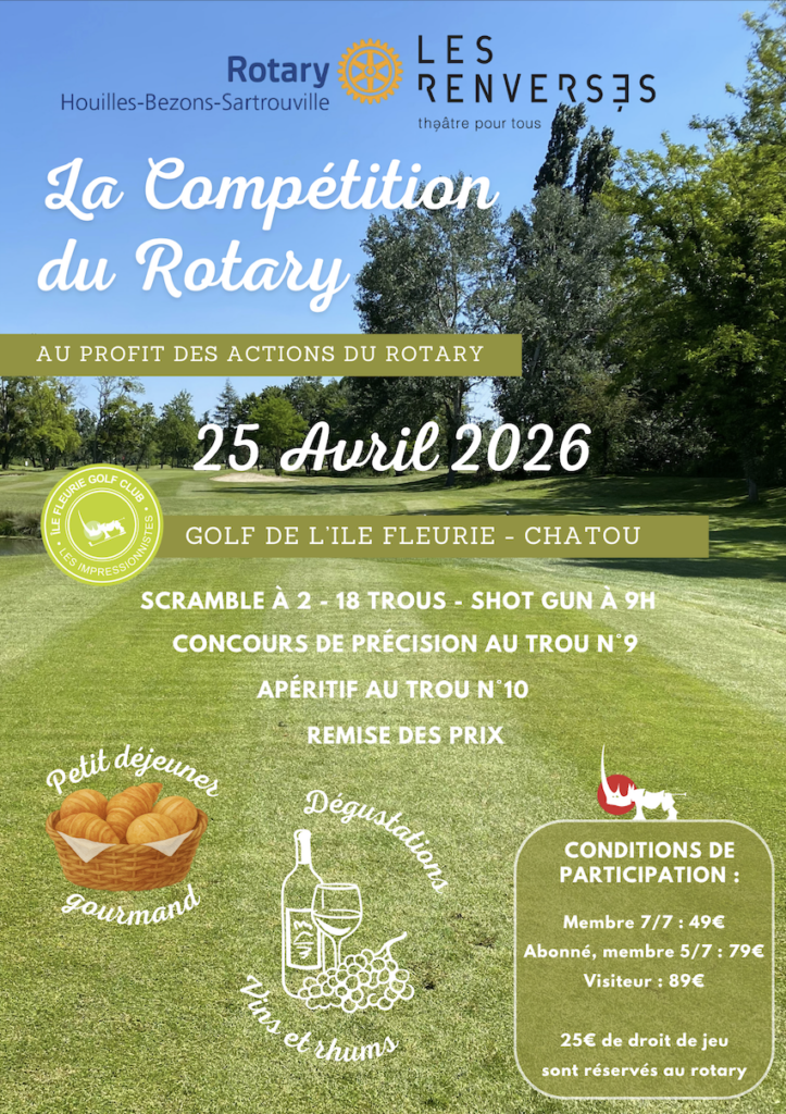 Le Rotary vous donne rendez-vous le 25 avril au Golf de l’Île Fleurie pour une journée placée sous le signe du sport, de la convivialité et du partage ! Compétition ouverte à tous.